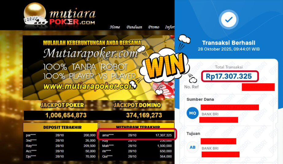 Bukti Withdraw ( 17,307,325,- ) Member Setia MutiaraPoker