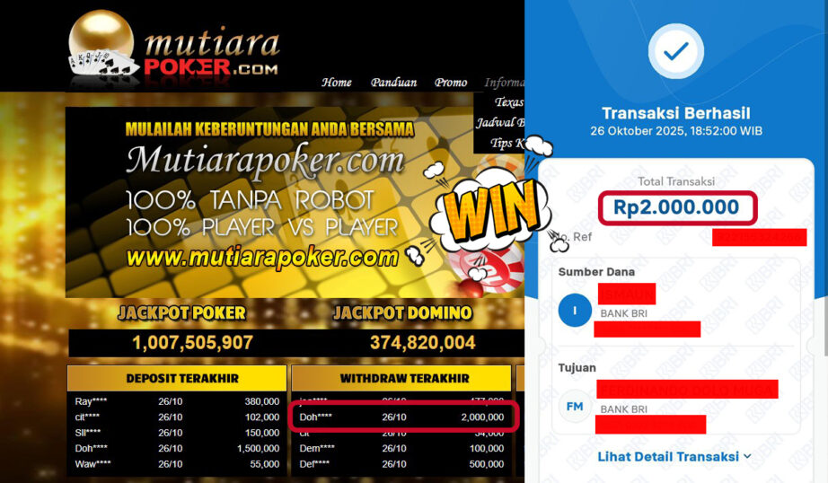 Bukti Withdraw ( 2,000,000,- ) Member Setia MutiaraPoker
