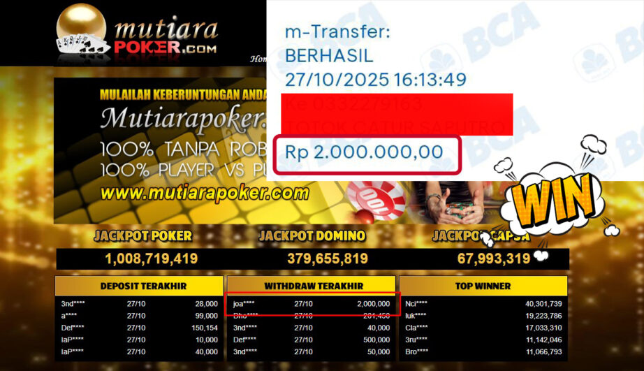 Bukti Withdraw ( 2,000,000,- ) Member Setia MutiaraPoker