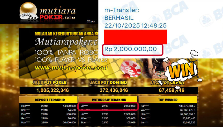 Bukti Withdraw ( 2,000,000,- ) Member Setia MutiaraPokerc