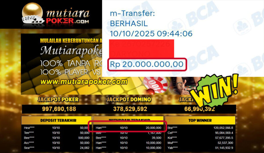 Bukti Withdraw (20,000,000,- ) Member Setia MutiaraPoker
