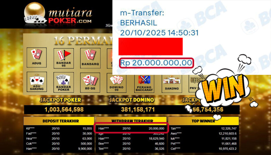 Bukti Withdraw ( 20,000,000,- ) Member Setia MutiaraPokerc