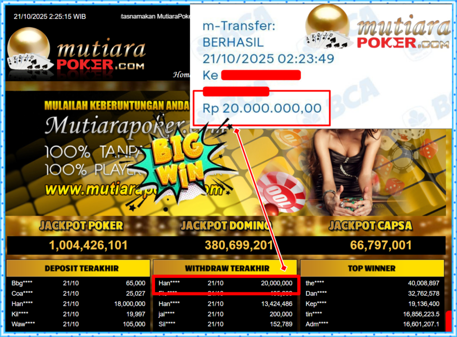 Bukti Withdraw ( 20,000,000,- ) Member Setia MutiaraPokerc