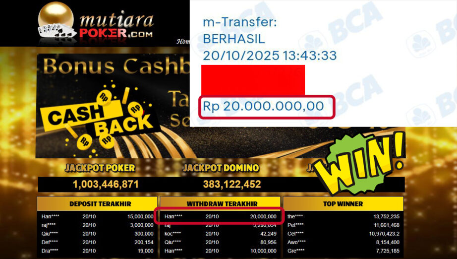Bukti Withdraw ( 20,000,000,- ) Member Setia MutiaraPokerc