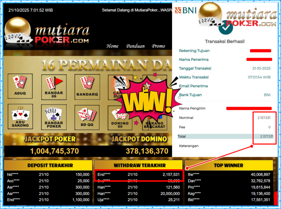 Bukti Withdraw MutiaraPoker