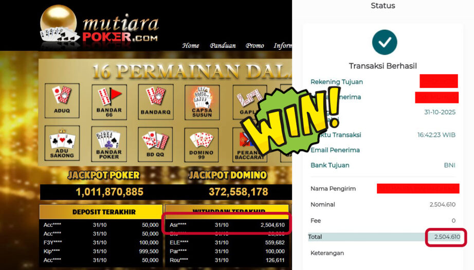 Bukti Withdraw MutiaraPoker