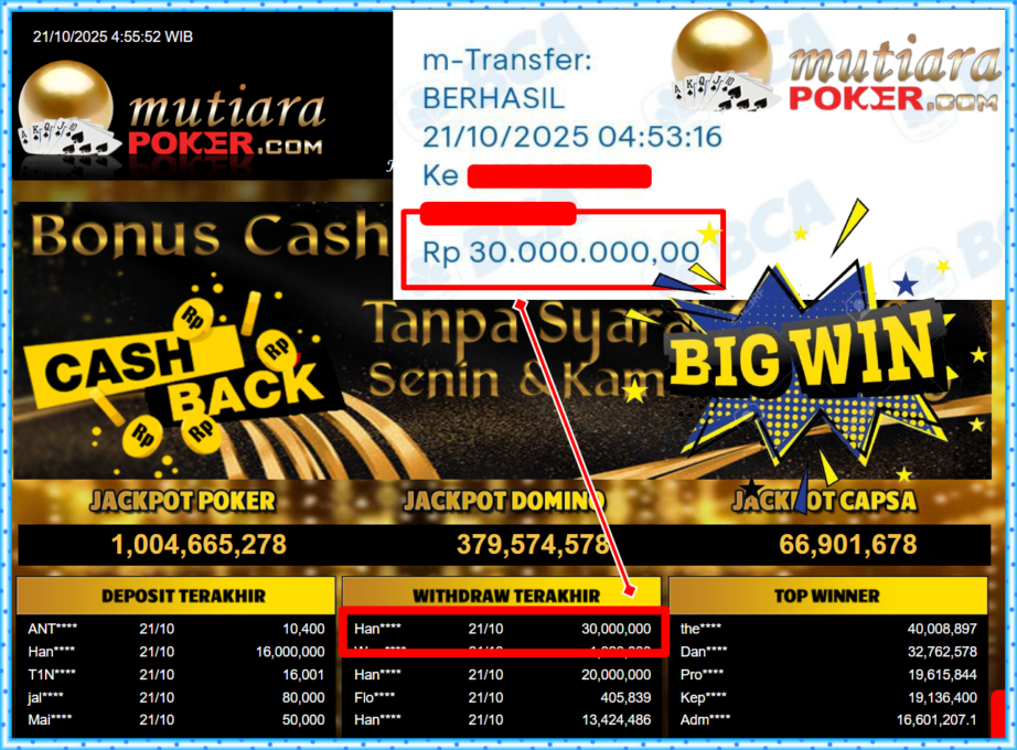 Bukti Withdraw ( 30,000,000,- ) Member Setia MutiaraPokerc