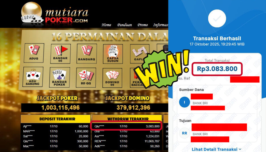 Bukti Withdraw ( 3,083,800,- ) Member Setia MutiaraPoker