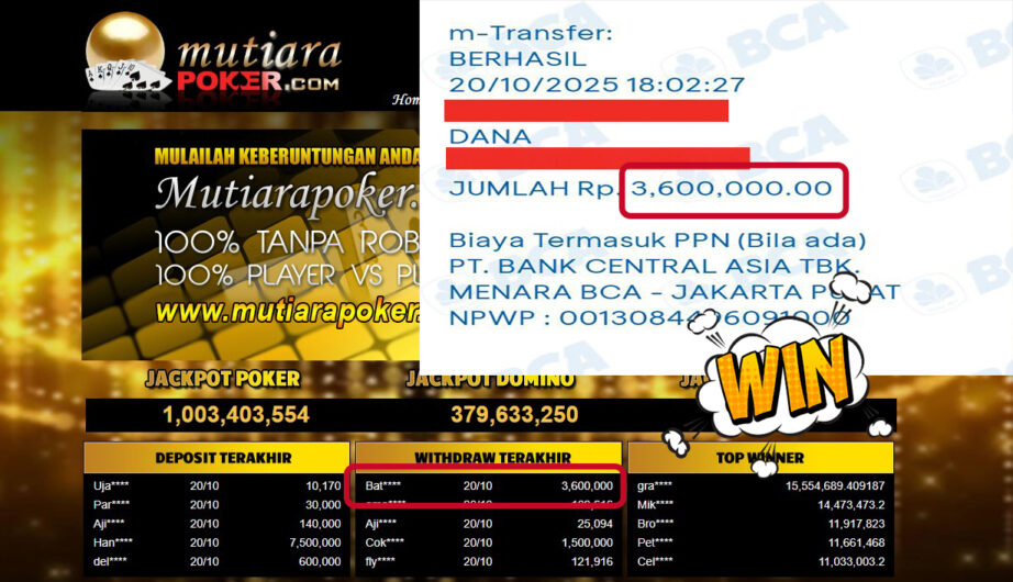 Bukti Withdraw ( 3,600,000,- ) Member Setia MutiaraPokerc