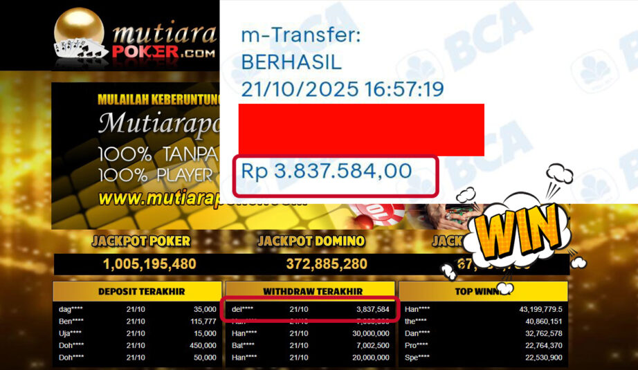 Bukti Withdraw ( 3,837,584,- ) Member Setia MutiaraPokerc