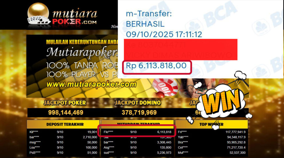 Bukti Withdraw ( 6,113,818,- ) Member Setia MutiaraPoker