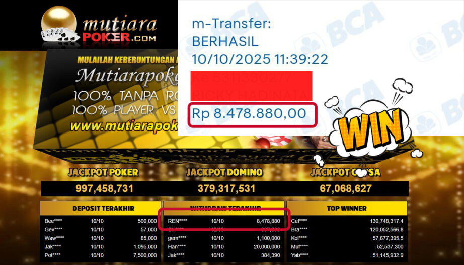 Bukti Withdraw (8,478,880,- ) Member Setia MutiaraPoker