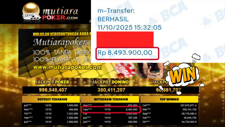 Bukti Withdraw ( 8,493,900,- ) Member Setia MutiaraPoker