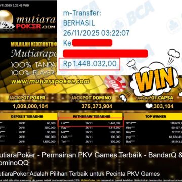 Bukti Withdraw ( 1.448.032,- ) Member Setia MutiaraPoker