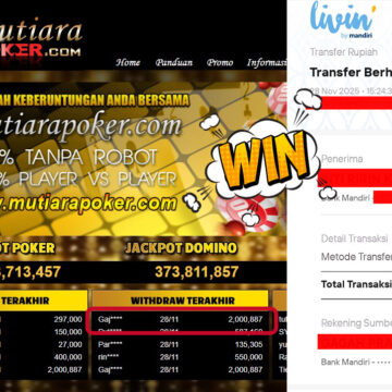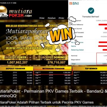 Bukti Withdraw ( 1.500.000,- ) Member Setia MutiaraPoker