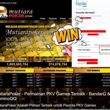 Bukti Withdraw ( 1,704,000,- ) Member Setia MutiaraPoker
