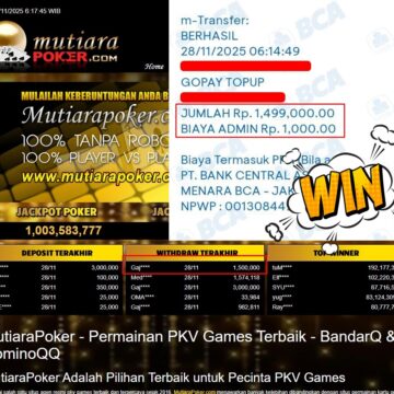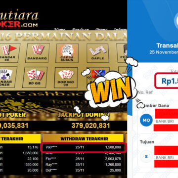 Bukti Withdraw ( 1,500,000,- ) Member Setia MutiaraPoker