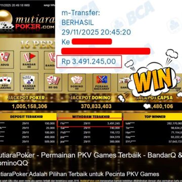 Bukti Withdraw ( 3.491.245,- ) Member Setia MutiaraPoker