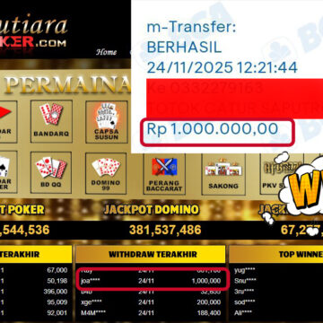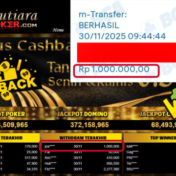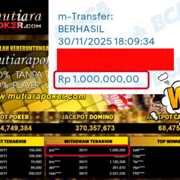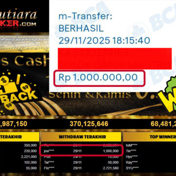 Bukti Withdraw ( 1.000.000,- ) Member Setia MutiaraPoker