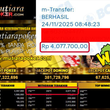 Bukti Withdraw ( 4,077,700,- ) Member Setia MutiaraPoker