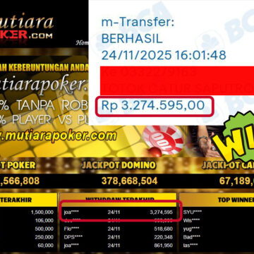 Bukti Withdraw ( 3,274,595,- ) Member Setia MutiaraPoker