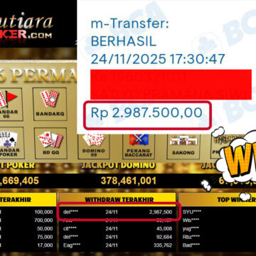 Bukti Withdraw ( 2,987,500,- ) Member Setia MutiaraPoker