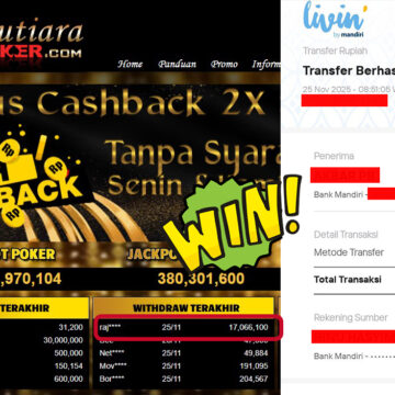 Bukti Withdraw ( 17,066,100,- ) Member Setia MutiaraPoker