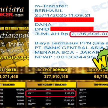 Bukti Withdraw ( 2,136,606,- ) Member Setia MutiaraPoker