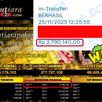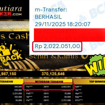 Bukti Withdraw ( 2,022,051,- ) Member Setia MutiaraPoker