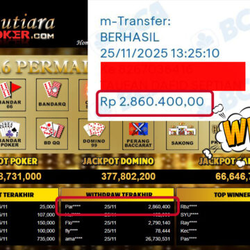 Bukti Withdraw ( 2,860,400,- ) Member Setia MutiaraPoker