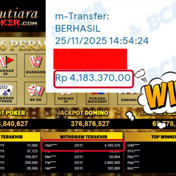 Bukti Withdraw ( 4,183,370,- ) Member Setia MutiaraPoker