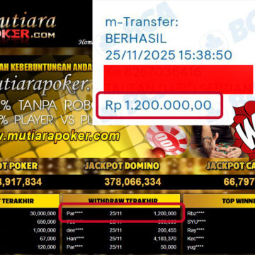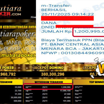 Bukti Withdraw ( 1,200,995,- ) Member Setia MutiaraPoker