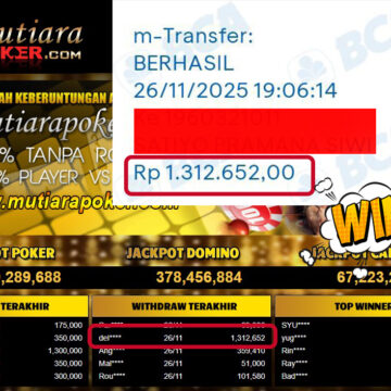 Bukti Withdraw ( 1,312,652,- ) Member Setia MutiaraPoker