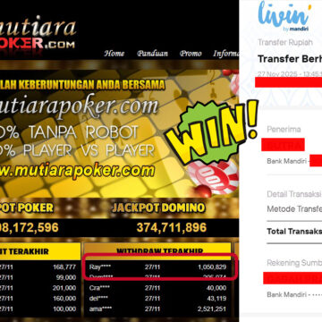 Bukti Withdraw ( 1,050,829,- ) Member Setia MutiaraPoker