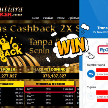 Bukti Withdraw ( 2,400,000,- ) Member Setia MutiaraPoker