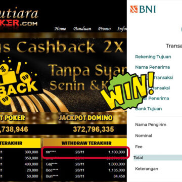 Bukti Withdraw ( 1,100,000,- ) Member Setia MutiaraPoker