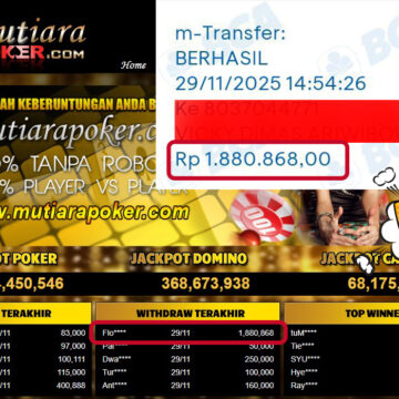 Bukti Withdraw ( 1,880,868,- ) Member Setia MutiaraPoker