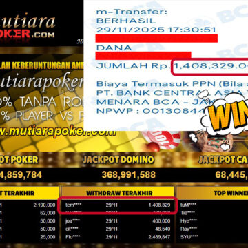 Bukti Withdraw ( 1,408,329,- ) Member Setia MutiaraPoker