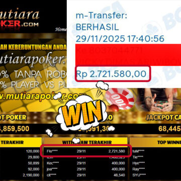 Bukti Withdraw ( 2,721,580,- ) Member Setia MutiaraPoker