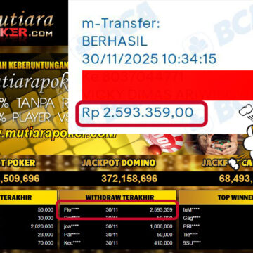 Bukti Withdraw ( 2,593,359,- ) Member Setia MutiaraPoker