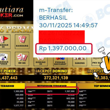 Bukti Withdraw ( 1,397,000,- ) Member Setia MutiaraPoker