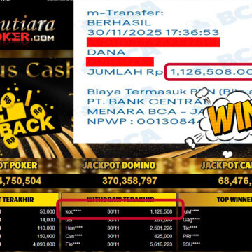 Bukti Withdraw ( 1,126,508,- ) Member Setia MutiaraPoker