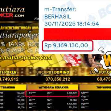 Bukti Withdraw ( 9,169,130,- ) Member Setia MutiaraPoker