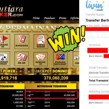 Bukti Withdraw ( 43,090,500,- ) Member Setia MutiaraPoker