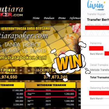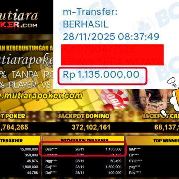 Bukti Withdraw ( 1,135,000,- ) Member Setia MutiaraPoker