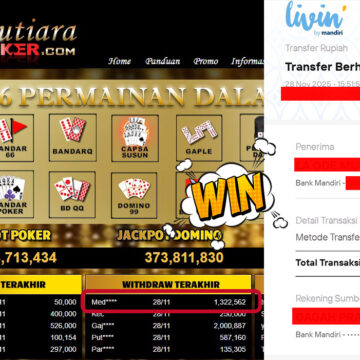 Bukti Withdraw ( 1,322,562,- ) Member Setia MutiaraPoker