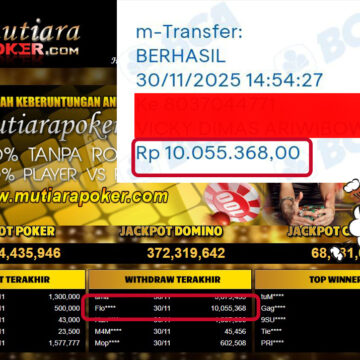 Bukti Withdraw ( 10,055,368,- ) Member Setia MutiaraPoker