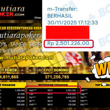 Bukti Withdraw ( 2,501,226,- ) Member Setia MutiaraPoker