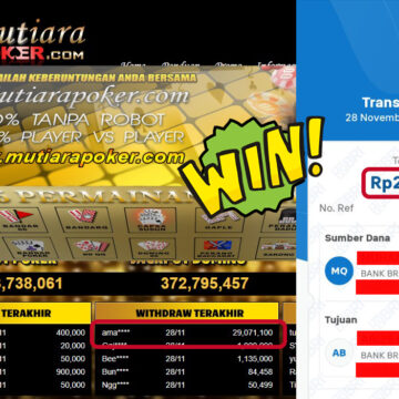 Bukti Withdraw ( 29,071,100,- ) Member Setia MutiaraPoker