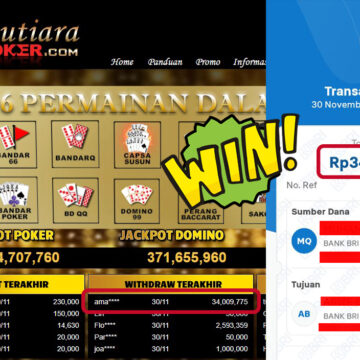 Bukti Withdraw ( 34,009,775,- ) Member Setia MutiaraPoker